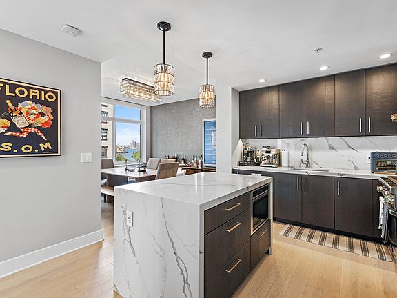 Welcome to 1400 Hudson Street! Step into this stunning 2 bedroom/2 bath home where luxury meets comfortable living in the heart of vibrant Hoboken. This thoughtfully designed residence showcases premium finishes throughout with a chef style kitchen featuring custom cabinetry, quartz countertops, and high-end Thermador appliances. Enjoy dining with views of the Hudson river form your kitchen table. The open style floorpan allows for easy living, flowing seamlessly from the kitchen to living area. With generous size bedrooms and closet space, your primary bedroom will be your own tranquil retreat. Most impressively, enjoy warm weathered days on your own expansive patio - a rare find that extends your living space into your own private sanctuary. Last but not least, large storage space included! Residents of 1400 Hudson Street have access to gym, rooftop pool with city views, residence lounge, billiards room, rooftop grills and fire pit, private shuttle to the path, 24 hour/doorman and security. Located in one of Hoboken's most desirable neighborhoods; enjoy close proximity to parks, dining, shopping, coffee shops, bus, and ferry.