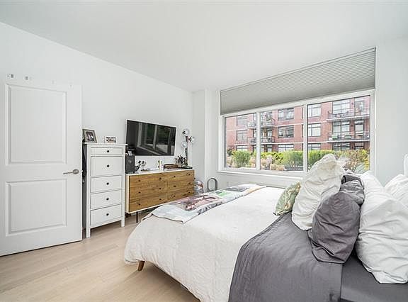 Oversized one bedroom 1.5 bath with large patio on the landscaped courtyard. Great layout. no wasted space. Kitchen features Quartz counters and backsplash, custom cabinets, stainless steel appliances. Large bedroom easily fits a king size bed and has a large walk in closet. Community features 24hr concierge, 3 gyms, children's playroom, community room that also opens to the landscaped courtyard, rooftop gardens with pool, fire pit, tv and bbq's. Commuter's delight with ferry and bus located a few blocks away or take the private shuttle to Hoboken Path. Parking available. 3D tour available.