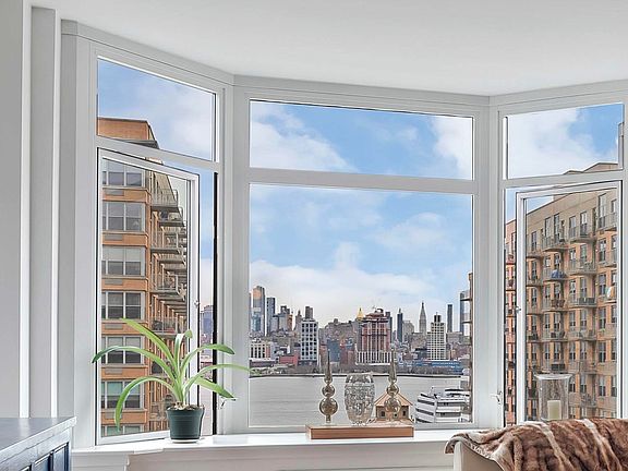Experience breathtaking views of the Manhattan skyline and Empire State Building from this rare east-facing 2-bedroom, 2-bath residence at the coveted 1400 Hudson Tea Building. This beautifully designed home features a chef's kitchen with sleek quartz countertops and backsplash, top-of-the-line Thermador and Bosch appliances, and wide-plank hardwood flooring throughout. Thoughtful upgrades include custom blinds, walk-in closets, and an in-unit washer/dryer for added convenience. Enjoy full access to a suite of luxury amenities, including: 24-hour concierge, rooftop pool and sundeck with BBQ grills and lounge, two state-of-the-art fitness centers, children's playroom, game room, and residents' lounge, and just blocks from the ferry and bus, with a private shuttle to the PATH for easy commuting. Rental parking is available. Available starting September 5th.