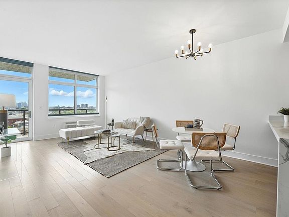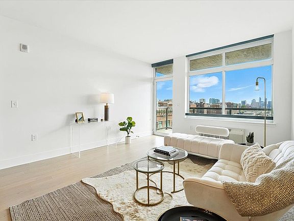 Come see this stunning 1-bedroom, 1 bathroom condo with NYC views at 1400 Hudson Street. This south facing home has an open-concept layout with a private balcony and oversized windows that flood the space with natural light. There is a sleek chef’s kitchen with top-of-the-line appliances and a breakfast bar open to the spacious living and dining areas. The large, bright bedroom has a large walk-in closet and is adjacent to the modern full bathroom which features a custom vanity and a shower over a bathtub. Enjoy premium building amenities including a pool, courtyard, rooftop deck with bbq grills & Manhattan views, fitness center, residents’ lounge, playroom, 24-hour concierge, and a shuttle to the PATH. This home is nestled in the vibrant uptown neighborhood, close to trendy cafes, shops, parks, and the ferry and bus to NYC.