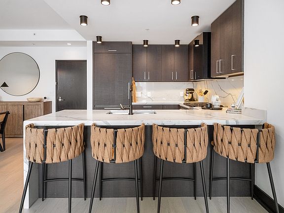 Breathtaking Empire State Building views from every room, welcome to Residence #830 at 1400 Hudson Street. Unlike any other sale in the building, move right in to a professionally designed home by Cheban Interiors. This 2 bedroom ; 2 bathroom home has the details that are often missed, from the newly installed Falmec Italian range hood in the kitchen, to Kelly Wearstler lighting, Legrand Wi-Fi light switches, custom top down bottom up Roman shades, and Brizo hands free kitchen faucet. The focus of the living room is in the ability to enjoy the warmth of your own Hearth Cabinet Fireplace. Designed only for this home, it is a one-of-a-kind centerpiece, for a one-of-a-kind home. The primary bedroom stays true to form, with a custom built-in California Closet open to the room, displaying the quality of work done. A bay window in the primary not only provides ample natural light, but also gently frames the immaculate New York City views. The second bedroom also shares the impressive views, along with a custom California Closets. Both bathrooms are beautiful designed, feeling more like a spa than a condominium. The floorplan provides ample space for the oversized kitchen outfit with Thermador and Bosch appliances, quartz waterfall countertop, and soft-close custom cabinets. A full dining room set overlooks the living space, giving the home a beautiful space to entertain and take in Hoboken living at its finest. While located in the ideal uptown location, transportation via the ferry or bus is at your fingertips, along with a private building shuttle to the Path. Walkability to the waterfront and restaurants are unmatched by any other location in town. The building amenities are what new developments strive to keep up with, as the rooftop pool looks to be one of the last built on the Hudson waterfront. Also included are three separate rooftops, a private resident lounge, 24hr concierge, onsite super, fitness center, yoga room, children's playroom, billiards room, and ready to use fireplaces and BBQs. No luxury condominium is complete without your own private/covered deeded parking space within the building. Take the next step towards an elevated Hoboken living experience and schedule a private tour today.