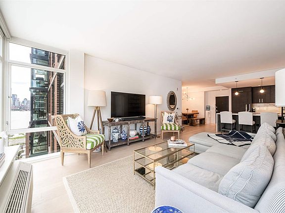 This move-in ready, spacious 3 bedroom/2 bathroom condo is now available in the luxurious 1400 Hudson Street at Hudson Tea. This home offers 1,437 sq feet of open floor plan with a clear view of the Hudson River and Manhattan's Hudson Yards neighborhood from the living room. The northern exposure allows for plenty of sunlight throughout the day. Kitchen includes waterfall quartz counters, Thermador & Bosch kitchen appliances, breakfast bar and a separate dining area. The main bedroom suite is on the opposite side from the other 2 bedrooms for complete privacy. Either bedroom can easily be converted to a home office (as shown in the pictures). Ample closet space throughout and washer/dryer included in the unit. Google Nest smart thermostats installed in each room. Building amenities include: 24/7 concierge, Discounted parking available for rent one block away at Hudson Tea garage (1450 Bloomfield Street), State-of-the-art fitness center and yoga studio, Residents' lounge with study, Landscaped interior courtyard, Sports den with billiards table and lounge, Children's playroom, Rooftop pool, Shared rooftop terrace with two grills, lounge and outdoor television. Extremely close distance to NY Waterway ferry, 126 bus route to Port Authority, and building offers a free shuttle to the Hoboken PATH station