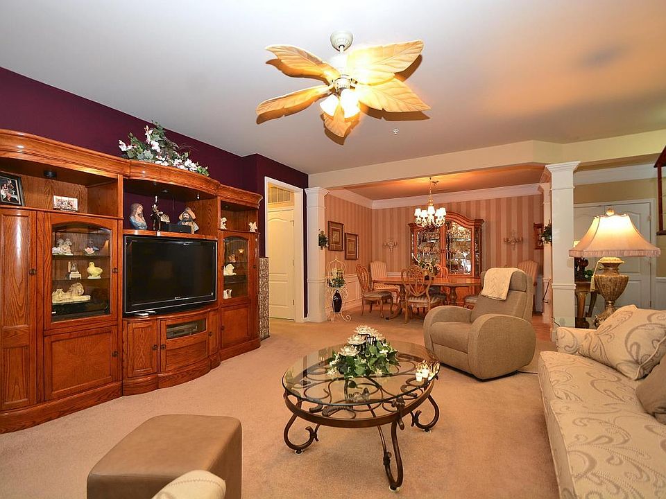 3rd level condo in elevator bldg..9 ft ceilings..Large kitchen with tile flr & granite counters w/ matching tile back splash, 42" cabinets, under cabinet lighting, organizational slide-outs in cabinets..surround sound in LR..Plenty of storage space in laundry rm & storage closet.. updated vanities w/ granite counters in baths, walk in tub and shower stall..Master Sutie w/sitting Rm.Balcony