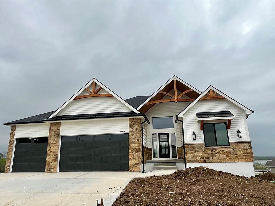 The "Phoenix II" by Walker Custom Homes is a 3000+ sq. ft. reverse floor plan that offers the perfect blend of luxury and functionality. Designed for both grand entertaining and casual living, the home features an open floor plan on both the main and lower levels. The main floor includes a spacious master suite with a large bath and walk-in closet, along with a second bedroom and bath that can serve as a guest room or office. The great room, complete with a fireplace, is open to the kitchen and dining area, creating an inviting atmosphere. A covered deck with its own fireplace provides a serene space to enjoy sunsets and views of Lake Creekmoor. The lower level boasts two additional bedrooms and a bath, as well as a large rec room with a wet bar, offering ample space for relaxation or entertainment. Estimated completion date is early April 2025! Enjoy Creekmoor amenities which include use of golf course, lake, sport's courts, exercise facility, walking trail, clubhouse facilities - restuarant., and pools!