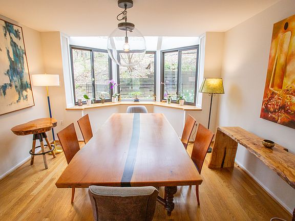 Gorgeous home in amazing location: feel like you're on vacation yet be 8 mins from DC. Very safe neighborhood that has great schools. Beautiful 3-story, architect-designed house in the woods that's full of light and views of nature. Enjoy privacy on the secluded hill & large plot of land (2/3 acre), incl. a large yard. Relax in the sauna, enjoy a sweeping deck that overlooks a pond, watch movies on the 100 inch projector tv, play ping pong, entertain guests at the custom built dining table, exercise on the elliptical, make a cappuccino on the Italian espresso machine, or unwind at the fire pit in the woods. - Spacious kitchen with new high-end gas range/oven & new top of the line microwave - Gorgeous natural wood island kitchen - New modern, sustainable deck - Timbertech mahogany - Wood burning fireplace - Sauna - 100-inch projector tv - Panel of skylights that light up the 2nd floor - Screened-in porch for rainy days - Custom built fire pit - Stiga Onyx ping pong table - New custom-built live edge dining table - Reverse osmosis water filter system - Wine fridge for over 120 bottles - Audiophile stereo system - Italian espresso machine - Nautilus elliptical exercise machine - Second deck above garage Beautiful master suite with 2 walk-in closets, newly remodeled bathrooms, new hardwood floors upstairs. Furnished basement with large bedroom and complete 2nd kitchen, central AC & heat, large garage. Excellent public schools, very safe neighborhood. Nature lover's dream, with a 3 mile hiking/jogging trail across the street and close to Great Falls. 5 mins to grocery, Total Wine, excellent restaurants (Aracosia, Sorn Thai), and USA Today's #1 butcher shop in the country, the Organic Butcher. House comes furnished with Room and Board & Restoration Hardware furniture. $30 application fee. Renters responsible for utilities.