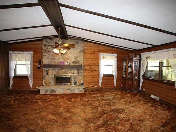 Gorgeous Log Cabin Ranch situated Nicely on an Incredibly PRIVATE Location of OVER 3 1/2 Acres w/ Pond! ENOURMOUS 50x17 Detached Garage ideal for RV, Campers, Boats, Toys or Lots of Cars!!! Huge Eat-in Kitchen offering Plenty of Cabinets, Double Stainless Steel Sink plus Electric Stove & Refrigerator included. Stunning Stone Fireplace in Living Room. Beautiful Log Walls in Many Rooms. Master Bedroom w/ 1st Floor Powder Room. Convenient 1st Floor Laundry. Awesome 40x5 Covered Front Porch. Plenty of Off Street Parking.