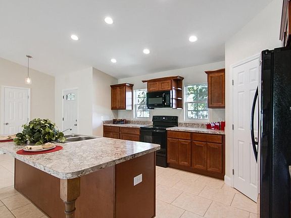 This brand new block home offers 3 bedrooms, 2 full bathrooms and open floor plan. The cathedral ceiling makes for open, spacious living, dining and kitchen areas. Kitchen has large island, pantry and double sink. Sliding glass doors lead to the covered lanai. Full master suite with walk-in closet. Split bedroom floor plan. An enclosed 2-car garage finishes off this beautiful new home. Indoor laundry room with washer/dryer hook-ups. Architectural shingles. Large back yard; property is 1/3 of an acre. Established neighborhood with NO HOA!