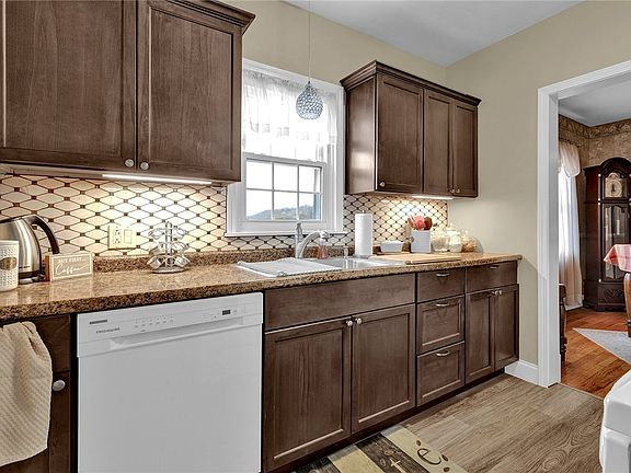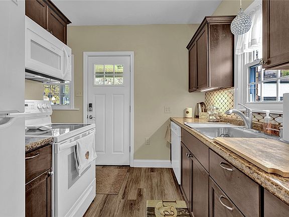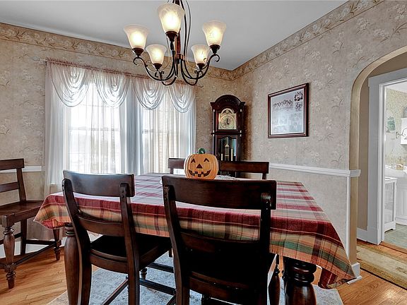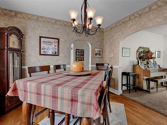 This delightful story-book cape cod home sits on a large lot and is nestled among mature trees. Full of charm and character with a beautifully updated kitchen featuring expresso cabinets, tiled backsplash and new appliances. Spacious dining room features hardwood flooring which continues under the carpeting in the living room and two main floor bedrooms (one currently utilized as a den). Large second floor provides a great game room which leads to the expansive third bedroom equipped with a half bath. The unfinished basement is a blank canvas, envision your finished family room, craft room or home gym featuring the exposed brick walls or simply utilize for all your storage needs. Glass block windows installed and Washer and Dryer included. Outside enjoy the wonderful deck featuring one side covered off the kitchen and the rear open for the sunseekers. Amazing table-top lot with off street parking has plenty of room for your future garage. Shed to the right of the home is also included.
