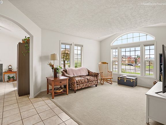 Very light and bright with vaulted ceilings. This attractive home boasts large windows for lots of natural light, situated on a large corner lot. Tile floors throughout most of the living area, carpet in living room and 1 bdrm only. Granite tile kitchen counters. Living room, plus a vaulted family room w/ Gas Fireplace