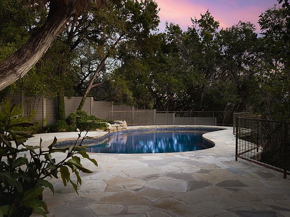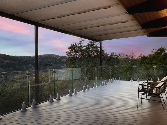 Welcome to The Jewel of Mount Larson, a one-of-a-kind architectural sanctuary perched above Bee Creek Canyon in the heart of Westlake Hills (78746). Nestled on nearly 1.5 acres of pristine hilltop terrain, this reimagined mid-century modern retreat offers sweeping panoramic views that stretch all the way to Lake Austin, delivering an immersive connection to nature rarely found this close to downtown Austin. Originally built in 1993 by Acorn Deck Co., the home was completely transformed in 2020 by the visionary team at DK Studio and LBR Homes. The result is a timeless fusion of mid-century inspiration and contemporary elegance—think Frank Lloyd Wright meets AD Stenger—where warm organic materials like natural wood, stone, linen Silestone, and Brazilian blue quartzite contrast beautifully against soft stucco and neutral hues. From the moment you arrive at the artisan-designed gated entry, you'll sense this is no ordinary property. Expansive architectural windows frame the ever-changing natural landscape, bathing interiors in light while maintaining an extraordinary sense of seclusion and serenity. The 1,200 square feet of outdoor lounge areas, resurfaced pool, and tropical patio setting create a private resort-like ambiance—perfect for entertaining or quiet reflection. The main residence offers three bedrooms and three-and-a-half bathrooms, highlighted by a luxurious primary suite with tranquil canyon and treetop views. A detached flex space with a full bath provides endless possibilities for a guest house, home office, studio, or wellness retreat. Located within the prestigious Eanes ISD and featured on the Austin Modern Home Tour, this residence is a rare convergence of thoughtful architecture, privacy, and timeless design. From the raised garden beds and curated landscaping to the seamless indoor-outdoor flow, every inch of the home has been meticulously curated to enhance the way you live. Whether you're an architectural enthusiast, nature lover, or simply seeking a lifestyle of beauty and privacy in one of Austin's most sought-after neighborhoods, The Jewel of Mount Larson is more than a home—it's a legacy waiting to be embraced.