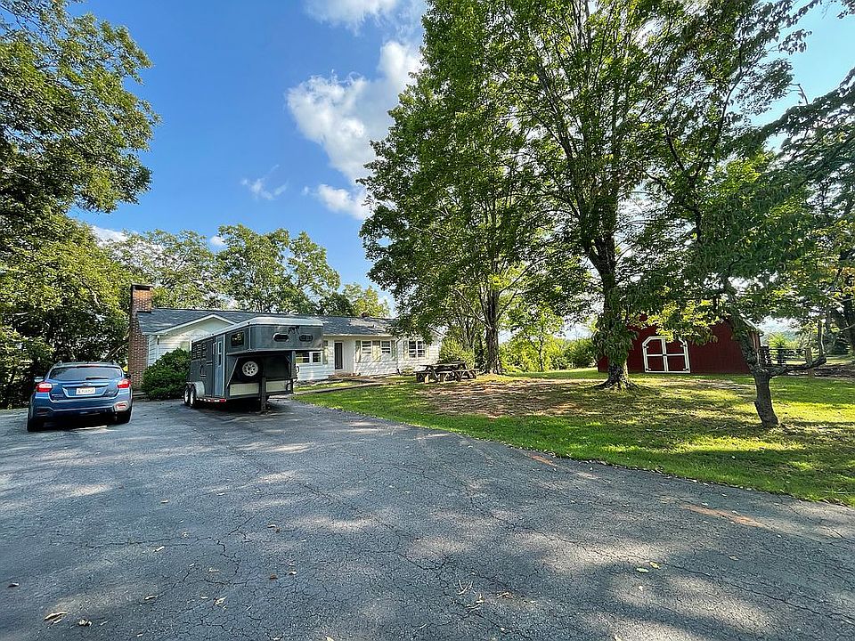 *Buyers Agents Welcome* Cozy ranch style home situated on 17.5+ partly wooded acres with a creek, inviting living room, hardwood floors, large kitchen, plus a fireplace with gas logs and lots of built-ins. Full basement with outside garage door for extra storage and a garage area. Bring the horses! 28x28 two-stall barn on slab. The stalls are attached to a one acre fenced paddock. Close to the North Carolina line, FETA trail system and TIEC. This home is a three bedroom home that was opened up with a doorway connecting the two back bedrooms for a larger main suite. Seller willing to close doorway to create three bedrooms as it was built - at buyer's request. New roof in 2019. New water heater in 2020. HVAC system is 5 years old.