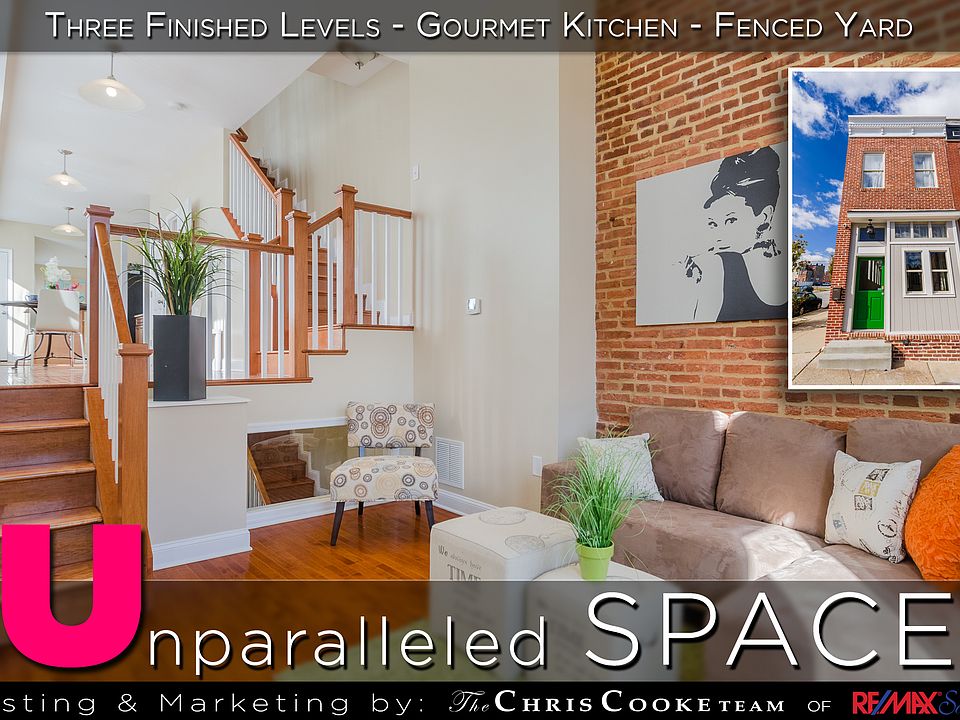 PICTURE PERFECT END OF GROUP RENOVATION WITH 3 FINISHED LEVELS! Sunken LR w/ hw floors & exposed brick, separate dining area, island kit w/ granite counters, ss appliances, tile backsplash, & breakfast area, Master suite w/ full bath, 2 additional beds w/ hall bath, finished basement w/ FR, half bath, & laundry area, & fenced yard that could easily be converted to a parking pad! $500 stove credit!