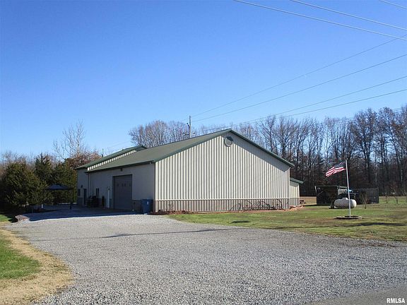 Beautiful, custom built 4 bedroom-3 bath pole barn home with huge attached, heated garage on 5.25 acres at the edge of town. This amazing home has heated floors, fireplace, vaulted wood ceilings, huge attached garage with gas furnace and wood furnace, floor drain. This property is just minutes from Rend Lake boating, fishing and camping. The property also has an almost new above pool (May 2021) and large patio area.