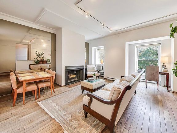 Cozy wood-burning fireplaceIn-unit washer and dryerCrown moldingStainless steel electric appliancesBright and airyGranite countersHardwood floors