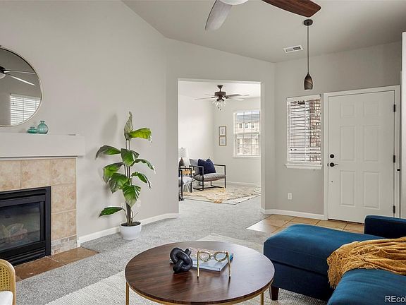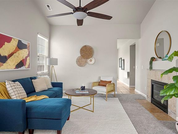 Welcome to this beautifully appointed ranch home close to open space and trails and surrounded by the natural beauty of Castle Rock. This home has great flow with high ceilings and an abundance of natural light. An open and welcoming living space with entry way closet and travertine tile, cathedral ceiling and a working fireplace, combined with a flex space off the main living area, make these rooms a great place to gather with large or small groups--with many potential uses. Large eat in kitchen with lots of cabinets and a pantry with a sliding door out to a new patio and large, fully fenced back yard. A primary suite with two sink vanity, walk in closet, and separate water closet and a second bedroom with potential third off of living space. Roomy second bath. Mud room/laundry area with W/D included. So many closets and storage in this meticulously maintained home with no work to be done here, pride of ownership thru out. Sprinkler system in both front and back yard, newer landscaping in back yard to include concrete patio, new grass, and sprinkler/drip system. Exterior of home has new paint and inside you will find new carpet, new paint, some new lighting, outlets, travertine tile, and a workman's dream with a heated garage. A/C less than 10 years old. Working fireplace, all appliances included. Come see this home today!