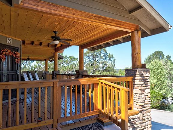 You will be impressed with this one owner beauty in a desirable subdivision. A rare find with a north facing front deck allowing spectacular views of the Mogollon Rim, the quiet at the end of a cul-de-sac, and the space and privacy of a large lot. An open floor plan gives you many opportunities to entertain, be inclusive while cooking, and the intimacy with the burning fireplace. The back yard moves upward for privacy with plenty of room for a ramada to soak in the views of the Rim. There is spacious room in the guest bedrooms. One bedroom opens to the spectacular front deck, which has room for eating or simply relaxing as you absorb the view. The oversized garage has a workshop and sink. Large RV parking. Enjoy the sun room, workshop, the back patio, or the deck. Oh, the choices!