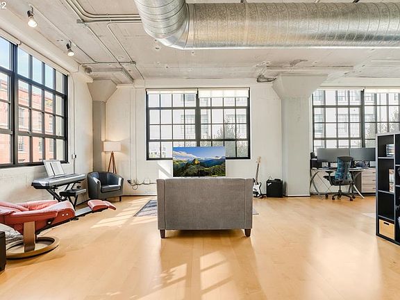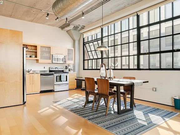 Welcome to the Avenue Lofts in the historic former Meier & Frank warehouse. Spacious sunny corner unit with walls of windows to take in the beautiful views. High ceilings with exposed ductwork give it that urban downtown feel. Maple cabinets, stainless appliances and countertops. Hardwood floors, central AC and washer/dryer. Deeded parking spot 142 and storage room. Check out the gym and courtyard atrium.