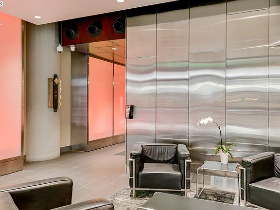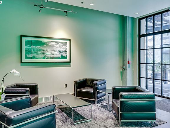 Contemporary loft living in the heart of the Pearl District! Soaring 11' heights are filled with natural light from floor to ceiling windows. A rare balcony unit with covered patio overlooking lush wooded atrium below, for some quiet serenity in the city. Expansive custom built cabinets cover all your storage needs. SS appliances, hardwood floors, and washer/dryer in unit for convenience. Has deeded parking and gym access. Blocks away from the renowned dining and shopping the Pearl has to offer!