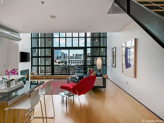Enjoy life in the Pearl in this top floor home in The Avenue Lofts. Coveted loft details including high ceilings, tall factory windows, and exposed ductwork. On the main level, you'll find hardwood floors, an impressive gas fireplace, and an open floorplan that extends to a covered private patio. The master suite makes up the entire second floor, with a walk-in closet and office with custom built-ins. Includes 2 tandem parking spaces!