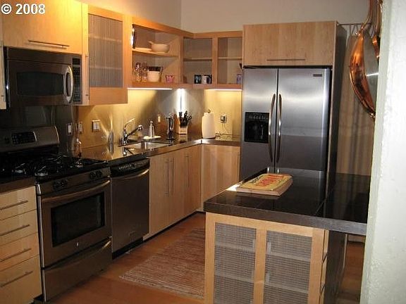 Wonderful location...next to restaurants, boutiques, coffee houses, clubs, parks, post office and grocery! Easy access to all major routes in/out and around Portland. Unit is one of three courtyard penthouses in the building. Two levels, high ceilings, patio balcony, courtyard/atrium, extra wide parking spot, storage closet, workout room and mezzanine. Interior is light and bright with lots of floor to ceiling windows, wood floors and tile thru-out, contemporary gourmet kitchen and lots of ...