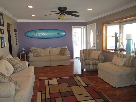 Featured Listing..Reserve your Summer 2017 Weekly Rental on the boardwalk! This renovated ocean front home has plenty of room with 7 bedroom and 3 baths! First floor kitchen table comfortably sits up 10-12 plus additional seating adjacent to dining area. Bedrooms throughout sleep 15. Bedroom downstairs fits a queen, has additional entrance to boardwalk and access to washer and dryer. Bedroom upstairs has king sized bed with a seperarate bath, beautiful deck and view of the ocean. There are two kitchens and parking for 7 cars. Steps to the beach and newly renovated.