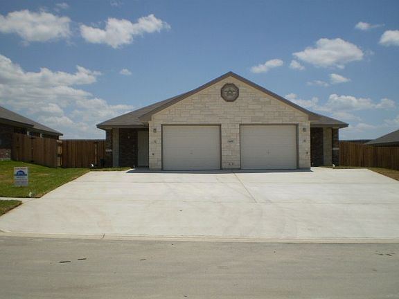 The quaint duplex has 2 bedrooms and 2 bathrooms. There is rustic stained concrete throughout home. Other features include a 1 car garage, fenced yard and a refrigerator! The appliances are all electric and has a washer/dryer connection. The exterior has a rock/brick combination.