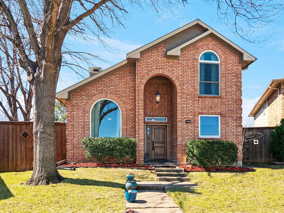 A delightful 2-story, three-bedroom, two-and-one-half-bathroom, single-family home with a two-car garage is nestled in a sought-after Carrollton neighborhood, just minutes from major highways and schools. The house combines style and functionality with beautiful flooring, perfect for families or individuals looking for comfort, convenience, and an excellent location. The formal dining area in this home is designed as a versatile space that can easily adapt to your needs. While traditionally used for dining, it can efficiently function as a home office, a play area, or even a quiet reading nook, thanks to its flexible layout. In addition to the flexible dining area, the inviting living room features vaulted ceilings, tall windows, and a cozy wood-burning fireplace, adding to the home's warm and welcoming atmosphere. The well-appointed kitchen boasts sleek countertops and plenty of cabinetry for storage. A cozy breakfast nook provides the ideal space for enjoying your morning coffee or casual meals. The spacious primary bedroom includes an open closet area and a walk-in closet, an ensuite bathroom with dual vanities, and two additional bedrooms with a full bathroom, making this home perfect for growing families- step outside into the private, fenced backyard, ideal for pets, children, or outdoor entertaining. Whether hosting a barbecue or simply relaxing under the stars, the outdoor space is perfect for creating memories.
