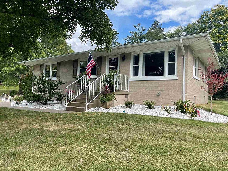 Spectacular brick ranch boasting 3 bedrooms 1 bath and a one car basement garage; all nestled on a tree shaded westside lot in Evansville. The living room is spacious and features lots of windows, warm color wall paint and plush neutral carpeting. An eat-in kitchen is highlighted with newer stainless steel appliances, an abundance of oak cabinets, and decorative vinyl flooring. There is also a built-in pantry cabinet and an access door to the backyard. Perfect access for backyard bar-be-ques by the Pool! All three bedrooms have pretty wall paint, ceiling fan lights, and plush neutral carpeting. The third bedroom has plenty of electrical receptacles so that it would also make a nice at home office. A Remodeled hall bath boasts a new vanity with marble top, mirror, light, faucet, backsplash, and beautiful vinyl flooring! The bath has a tub shower and built-in linen storage. Spacious family room with drywall walls, recessed lights, custom built-in, and commercial grade carpeting. (This room is currently being occupied by an adult son who is in the process of moving-so there is a lot of furniture in the room). There is a large laundry room with shelves, a workbench, and a ceramic tiled showered area-not currently working. A long basement garage with both laundry/utility access and family room access, features an opener with a remote for the insulated garage door. A huge level backyard with side road access could be useable for an additional garage to be built upon. Per owner: Roof, all new electrical wires and breaker box, lighting, floor coverings, appliances, insulation, and wall paint in 5/18. New deck 6/21 and pool 6/20. 2-10 Home Buyers Warranty is included until 6/22. A fantastic neighborhood and priced below recent appraisal; surely the home for YOU!!!