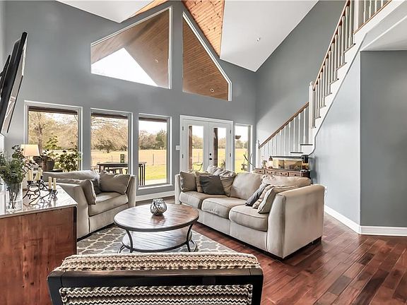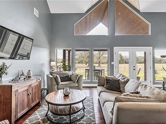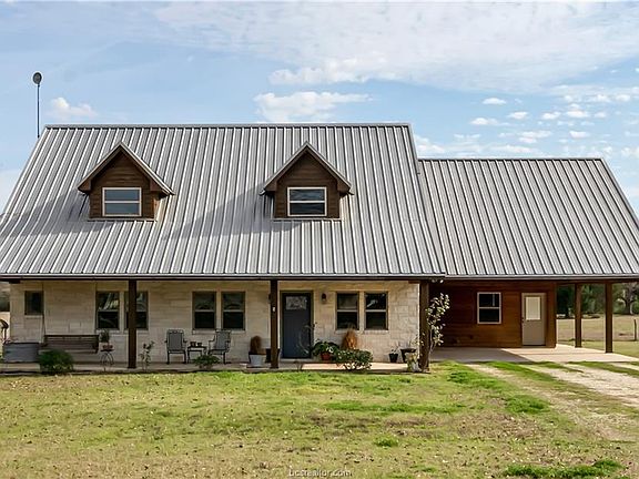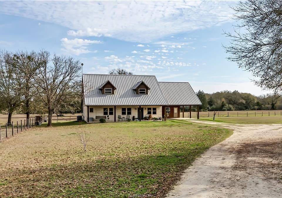 Situated at the end of a picturesque cul-de-sac, this gated 21-acre countryside oasis comes equipped with handsomely decorated main house, 60' x 50' barn, separate living quarters, and pond on site. Living room has vaulted ceilings and is drenched in natural light from the view of outdoor living area, complete with mature trees that line the property. The kitchen features tasteful hardware, custom cabinetry, stainless steel appliances, dazzling backsplash, and large center island. Master suite and one bedroom down, remaining two bedrooms are upstairs. Granite throughout! Property is set up for horses, cattle, or 4-H projects. Private country feel & only minutes from historic downtown Bryan!