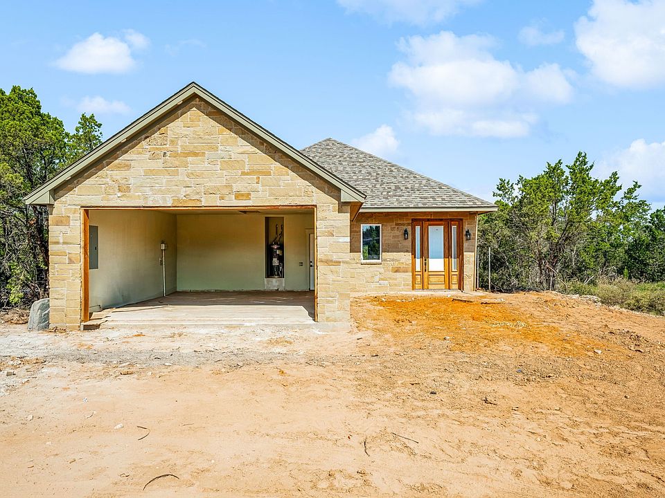 CB Homes Presents their model home The Mason! The Mason offers affordable luxury, tranquility, and comfort all within 1400 sq ft. This home host 10 ft Ceilings with luxury Fir Wood Beams that continue throughout the living, kitchen, dining, and primary room spaces. French doors against a wall of shiplap in the Primary Bedroom opens onto a covered balcony with a pergola that overlooks a breathtaking view of one of Granbury's natural greenbelts. Relax and enjoy Custom cabinetry with a complimentary Stainless-Steel Appliance package which includes a refrigerator, dishwasher, and a slide-in electric range. Granite countertops grace the kitchen and bathroom areas in addition to other adornments which include, brick accented coffee bar, Under-the-cabinet lighting throughout the kitchen and coffee bar, Custom Door and Window Trim work, Black Matte finishes, Laminate and tile flooring, marble and title shower accents, Sprinkler system, and a builder 1-2-10 year warranty. Welcome Home!