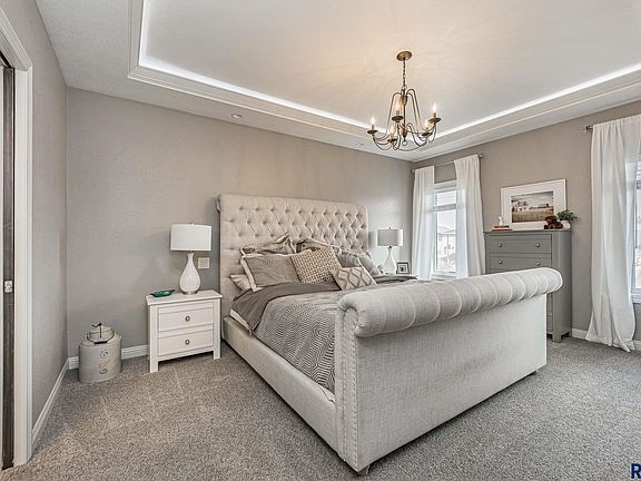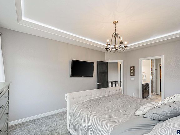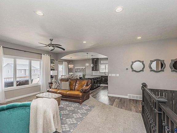 Remarkable walkout ranch custom built in 2016 across from the public elementary school. The design includes an open living, kitchen and dining area, 3 bedrooms and 3 bathrooms all on the main level, and main floor laundry. The kitchen includes custom built floor to ceiling cabinets, subway style backsplash, and large island. The master suite hosts a 5x5 tiled shower, heated tiled floors, duel onxy vanity sinks, and an impressive walk in closet. Large Anderson windows across the back of the house welcomes the natural light. The finished lower level features a large wet bar, ample space for more entertaining, 2 additional bedrooms with a full bathroom, and an enormous family room that walks out to the lower level. The oversized heated garage gives you more entertaining space in the winter or summer months. Owner is a licensed Realtor in South Dakota.