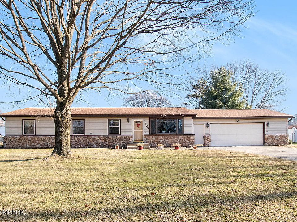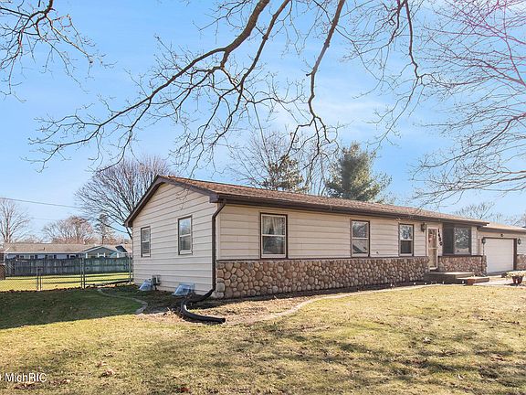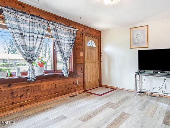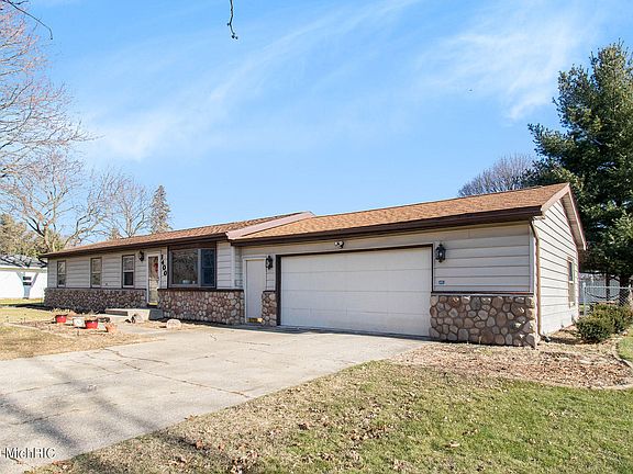 Some nice changes have been made to this spacious ranch style home. Open kitchen, dining and living room with wood burning fireplace. New flooring throughout the main floor, 3 bedrooms, 2 baths and main floor laundry. Sliding glass doors to deck in the backyard. Full finished basement with bedroom, rec room and lots of storage space. 2 car attached garage. Play equipment and shed stays. RSVD: Hardware an curtains in living room, front room and master bedroom.