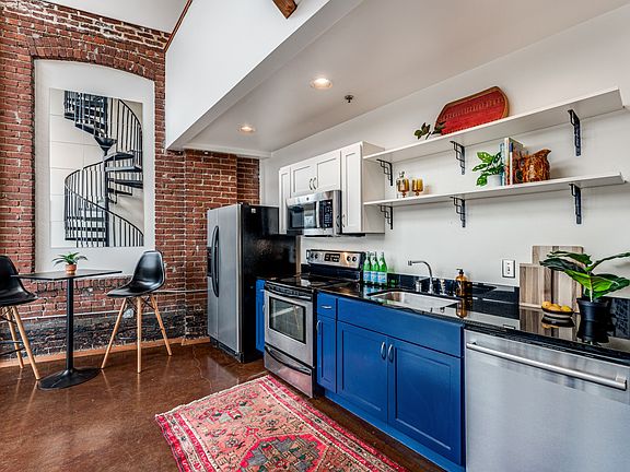 Welcome home to Werthan Lofts - one of Nashville's most beloved, historic developments. This multi-level unit is truly one-of-a-kind w/ century-old brick accents, soaring ceilings, & a 20' glass wall of windows. The dramatic spiral staircase leads to a lofted 2nd level bedroom/office & 3rd level office nook which opens to a private, rooftop terrace. The tastefully updated kitchen w/ granite countertops, stainless appliances, & open shelving is awash in natural sunlight. Unwind in the completely renovated bathroom w/ ample storage & convenient combo washer/dryer. The unit also features a freshly painted interior, Lutron lighting & smart bulbs/lock, custom window shades, & brand new HVAC. Development amenities include: gated entry, 2 saltwater pools, dog run, large fitness/yoga room, bocce ball court, & covered grilling area. Unbeatable location is a short stroll to popular restaurants, coffee shops, retail, Sounds baseball stadium, Farmers Market, plus quick highway/interstate access.