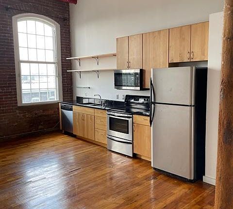 Freshly Painted 1BR, 1 Bath Loft with 20 ft Ceilings, Brick Walls and Beams. Two Pools, Gym, Concierge, Gated Entrance and Parking Included. No smoking