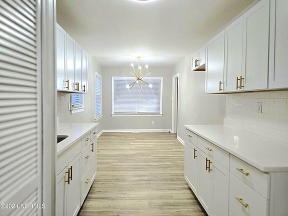 Eye-popping modern renovated ranch in the heart of Rocky Mount! This corner lot provides you with half an acre right in the center of the city. You will enjoy brand new LVP flooring, faux wood blinds, brand new bright white cabinets, subway tile backsplash, gorgeous quartz countertops and beautiful satin gold accents throughout. You're home will be the entertainment show stopper you have always wanted! Make this your next home today!
