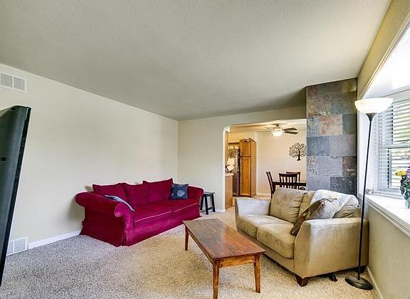 Traditional brick ranch in mature neighborhood in Thornton. This home has lovely curb appeal with a large welcoming covered front porch. The open floor plan includes a beautiful updated kitchen with stainless steel appliances, travertine tile floor, new cabinets and a stone tile backsplash. The master suite has an en suite bathroom. There is a gorgeous slate tile fireplace that separates the dining room and living room. The bathrooms have all been beautifully updated. The finished basement is a full footprint of the house and offers great additional living space with a non-conforming bedroom, bathroom, large rec room and a full size laundry room. You will fall in love with the basement as it a great man-cave for all the Sunday football games. The nicely landscaped backyard has a large covered patio, perfect for summer entertaining. Conveniently located to shopping, restaurants and entertainment. Easy access to I-25. Lease Requirements: 1-One month deposit and first month rent upon signing of lease 2-Background check 3-Employment verification/proof of funds 4-Minimum one year lease required 5-Utilities and yard maintenance tenant responsibility 6-ALL pets OK with one time $250/ per pet fee
