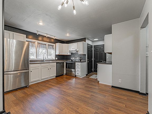 Choice home, choice location! Picture perfect 3-bedroom wood sided ranch style home situated within the desirable Starkey Acres subdivision! This home has been tastefully renovated both inside as well as outside in recent weeks -- quite a pleasant surprise! The interior boasts a bright and airy front facing living room with a great bay window, equipped eat-in kitchen with plenty of room for a table and chairs as well as an additional front facing exterior access point, three comfortably sized bedrooms -- all rear facing, and a full hall bath. The full mostly finished basement boasts an expansive family room with a built-in, den/optional fourth bedroom (no closet), laundry/mechanical area, and great storage/work space. Property also features an attached garage, covered front porch, rear concrete patio, fenced backyard with a large storage shed, newer architectural roof and solar panels (paid in full -- NICE!), and so many recent additional improvements including commercial grade gutters, new overhead garage door and garage door opener, modernized fixtures, flooring and fresh paint throughout, brand new range/oven, enhanced exterior landscaping -- the list goes on! All appliances to remain as well including washer and dryer. Beautiful home at a great price! ** BROKER OWNED **