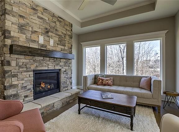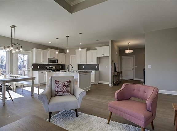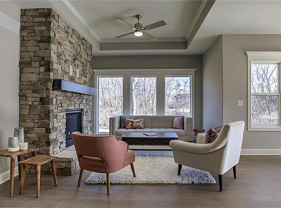 The Benson Reverse- this beautiful home sits on the perfect cul-de-sac treed lot, an ideal setting backing to green space and serene wooded views! Gorgeous upgrades throughout include floor to ceiling stone fireplace in living, large stone wrapped shower in master bath, spacious kitchen with custom soft close cabinetry and granite countertops, hardwoods and so much more. A must see for new construction in Raymore! 2020-03-29