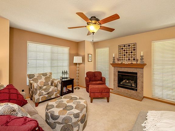 END UNIT Townhome is in a great location close to shopping, food and fun and with all the conveniences of association living! Welcome home to be greeted by your charming front porch which is the perfect spot to relax with your morning cup of coffee. The open layout on the main level is inviting and warm. The main floor living room is full of light with large windows and also features a gas fireplace. Bring all your kitchen gadgets and supplies you will love all the cabinets and walk-in pantry. The dining room features sliding glass doors to patio. The open staircase gives you a peek at your upper level where you have 2 bedrooms, 2 bathrooms, as well as family room/den. The owner's suite features a full bath and walk-in closet. Unfinished lower level is great storage and ready for your dream home theater room or another bedroom. Oversized 2 car attached garage