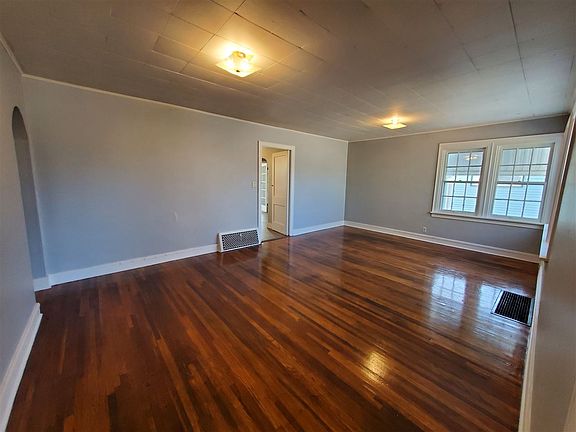 3 Bed 2 Bath home, refinished hardwood floors throughout bedrooms & living. Spacious living room, down the hall is a bedroom, along with main bath & master bed with attached bath! Kitchen has tall white cabinetry with wood laminate flooring. Also off the kitchen is a laundry area that also doubles as dining. Open gorgeous french doors into the 3rd bedroom with two built in closets & bay window area. Attached garage, fenced in yard and an unfinished basement.