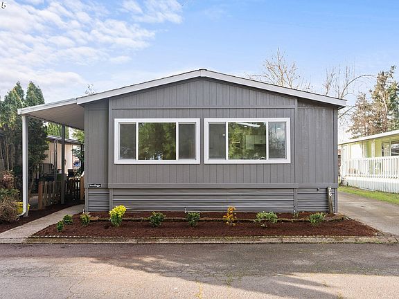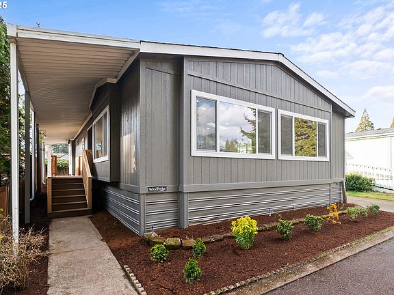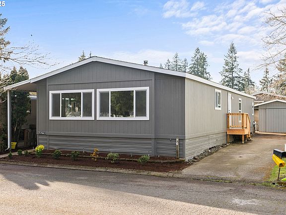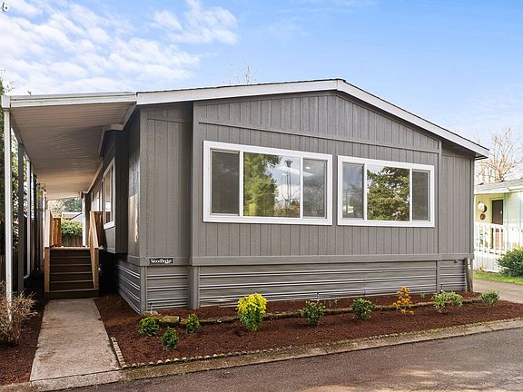 Stunning top to bottom remodel in the heart of Canby. Located at Elmwood mobile home park, this all age community park is centrally located close to schools, shopping, and more. Walk into a large living area with plenty of windows for ample natural light, dining area right of living, large open kitchen with stainless steel appliances & skylight, laundry room & half bath right off of the kitchen, 2 large guest bedrooms with oversized closets, full guest bath. Massive primary bedroom with walk in closet and huge bath. Outside you have a decent sized back yard with fresh landscaping, tool shed, multi-car parking, decks, and more. Recent upgrades include: New roof, new kitchen, new bathrooms, new paint, new landscaping, new windows, new flooring and more. Space rent is $695/ month. Cheapest space rent in town!!!!