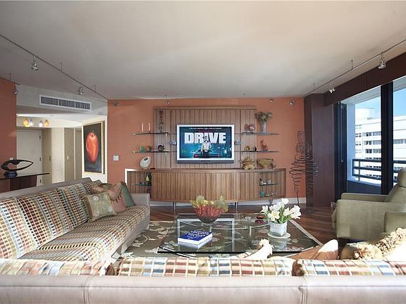 Location South Ocean Boulevard, Boca Raton, Florida. Resort-style beachfront living is the ultimate luxury of The Addison, an exquisite oceanfront jewel in guard-gated seclusion on a wide carpet of Boca Raton sands. Myriad amenities include 2 oceanfront pools with bar, beach cabana service, a renowned residents-only café, fitness center with sauna, elegant social rooms, and full-service staff. The Addison features a spectacular marble lobby and elevator foyers serving just 2 residences per floor. Mizner Park’s world-class shops and restaurants are just a few minutes away, and Boca Raton’s private executive airport is within a short drive. Residence High-floor wraparound views sweep from the Atlantic Ocean to the Intracoastal Waterway in this choice corner residence totaling 3,300± square feet with 3 bedrooms, 3½ baths, and floor-to-ceiling impact-glass walls to balconies on all 3 exposures. The stunning scenery interplays with the warmly elegant, clean-lined living environment, beautifully upgraded with hardwood floors and custom built-ins. Introduced by the foyer with circular tray ceiling, the spacious corner living opens to a wraparound balcony through 2 window walls, where spectacular ocean views take center stage. A perfectly placed wet bar also serves the open dining room. Flowing into an oceanfront breakfast area, the gourmet kitchen has custom cabinetry, granite counters, and Sub-Zero and KitchenAid appliances. Overlooking the Atlantic, the Intracoastal, and the city, the large master suite opens to balconies on 2 sides and features a custom-fitted dressing room, 2 walk-in closets, and luxurious marble bath with separate tub and shower. Offering a walk-in closet and marble bath, the second bedroom leads to a city-side balcony. Opening to the main balcony and ocean views, the third bedroom/den is appointed with custom library built-ins, a walk-in closet, and marble bath. To either side of the foyer are the powder room and laundry/utility room. Garage and carport parking spaces complete this exceptional Boca Raton offering at the Addison.