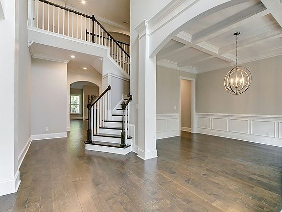 The circular drive and painted white brick front offer a dapper yet timeless vibe. Inside swank finishes prevail: Quartz countertops (throughout), full overlay cabs, dual laundries (one up/one down) - want for nothing! Sprawling layout allows for large gatherings. Main floor master with sitting room plus separate main floor study! Triple garage. Nearly a half-acre with driveway to CUL-DE-SAC in unmatched Hasentree with amenities aplenty. For those who rise above, welcome home!