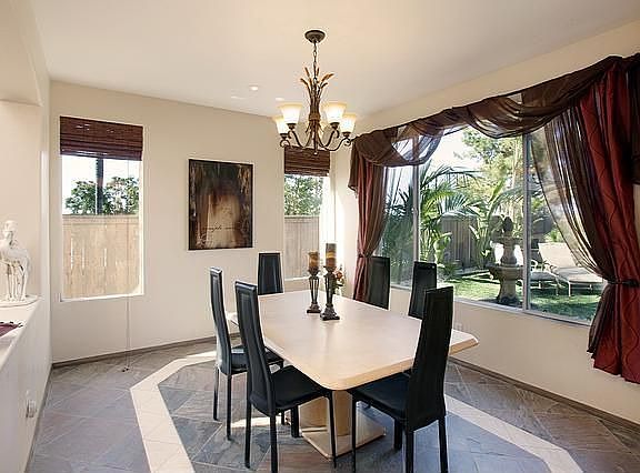 This beautiful 5 bedroom Southwest Carlsbad home has so much to offer, and is the LOWEST priced 5 bedroom home in 92011! Situated on a prime lot next to the resort-like pool area, this home has been not only well-maintained, but also boasts a plethora of quality features and upgrades. Views extend to the mountain ranges, The Crossings Golf Course, greenery, rolling hills, canyon, and even peek ocean views. Bright and open with vaulted ceilings, custom paint, custom granite counters throughout, plantation shutters, energy efficient low-vault lighting and fans throughout, upgraded kitchen with huge eat-in counter/bar, slate tile, upstairs laundry room. Separate dining room with custom decorator inlays and large dining buffet counter and cabinets. Slate tile flooring downstairs and in all bathrooms, hardwood in all bedrooms and all new fixtures and hardware throughout. The spacious master suite offers spectacular views, views, views with vaulted ceilings to boot. Large upgraded master bath with sunken tub, slate tiled shower, granite counters and walk-in closet. Privacy abounds in the backyard oasis, with newly remodeled hardscape (colored concrete, custom tile inlays, raised gazebo, water fountain, built-in BBQ and retaining wall, grassy area and dual gate entrances on each side of the home), making it an entertainer's paradise and perfect for a family too. 3 car garage with tons of storage and driveway parking for 4 vehicles. Lovely new front landscape and hardscape. Gated community with tot lot, recreation areas. Carlsbad schools. Low HOAs, no mello roos. Home can be sold fully furnished. All information provided by seller and from assessor record, is deemed accurate but is not guaranteed; buyer to verify square footage and all information prior to close of escrow. Neighborhood Description Great family neighborhood with tot lot, recreation area, community pool and spa. Lots of kids but very quiet. Wonderful place to live!