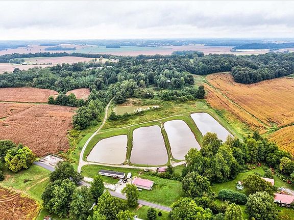 27.46 acres of land in McLean County, close to Daviess County line! This property includes 5 stocked lakes (approximately 1 acre each), and multiple buildings! 30x30 building - concrete floor, two restrooms, metal siding, walk-in freezer, ice maker, office in front, heated and cooled. Approximately 15x25 metal building w/ electricity and a beautiful wood interior. Another small storage building on property and up on the hill you'll find a covered shelter/storage area. There is currently a manufactured home at the front of the property that is currency rented for $400/month. On the back of the tract, you will find approximately 18 wooded acres that offer a great spot to build a home and/or to hunt on.