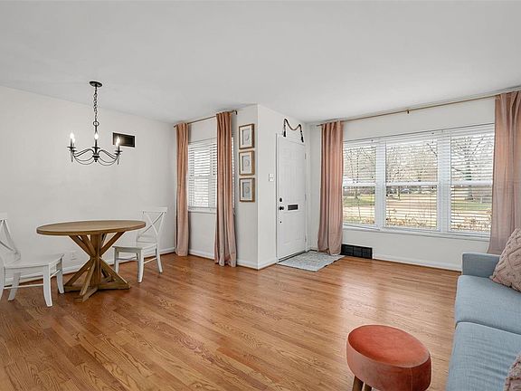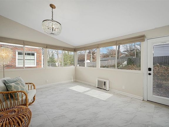 Charming, lime washed, brick home in Webster Groves. 2 beds, 1 bath, nicely landscaped with perennials and mostly level fully fenced backyard with flagstone patio. Refinished hardwood floors in living/dining area, hall and bedrooms. Light filled kitchen with new Oak Shaker style cabinet faces, granite counter tops, pantry and gas range. Updated bath with coved tub/shower inset and large glass block window. Open well-kept, large basement with sump pump perfect for projects, storage or gym equipment. Extra wide garage with new door. New roof, gutters and downspouts 12/24. HVAC updates 2023 (Carrier Brand AC/furnace w humidity control & smart thermostat.) Less than a mile from Webster Groves Park. Tax records do not reflect the sun room/ sitting area.