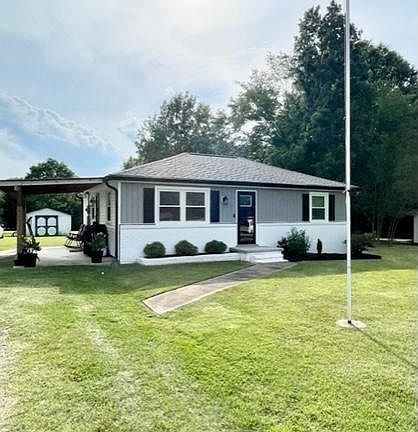 Lovely renovated 2 bedroom home in Mooresville. All of the renovations were done within the past 2 years: New roof, new kitchen, new flooring, new bathroom, new windows, new furnace, new septic, new siding, new plumbing, new sheetrock, new paint, new light fixtures, new gutters and downspouts. Kitchen has space for a dining table. Kitchen cabinets have soft close cabinets and metal cabinet pullout drawers. Bathroom features shiplap behind the mirrors, dual vanities, extra cabinet space and modern white tile in the shower. This level lot is HUGE and it goes all the way back to the tree line. Large wood Storage building is 12 x 24 and has electricity and plumbed for water. The smaller storage building is 15 x 16 has electricity and an outside RV outlet. Great covered side patio for relaxing. Located right down the street from Food Lion. Convenient to downtown Mooresville. This home is located in the Lake Norman School District.