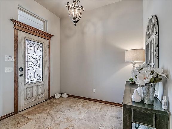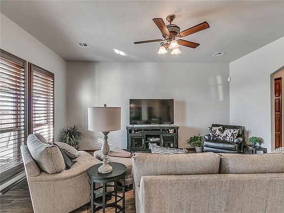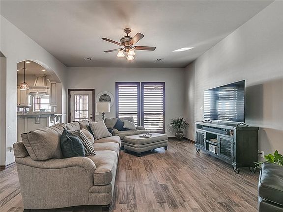 One of a kind home in Blanchard! Sitting on 1.10 acres, this 4 bd, 2 bth home has several upgrades. Custom plantation shutters throughout, along with tons of storage. New tile in every room, with NO carpet. The new range in the kitchen has wifi connection, allowing you to turn on the oven from your phone. A large owners suite, with a double vanity in the bathroom and an oversized closet with added storage space. Outdoors, there is blacktop drive to the large 30x30 insulated shop with electric, a rollup door and an additional storage building that will stay with the property. The 3 car garage has an epoxy floor, as well as a hard wired heater and an in ground storm shelter. Outside, you will see stained concrete, a pergola, rod iron fence and a custom outdoor kitchen with granite and stainless steel appliances. A beautiful saltwater pool with wifi controls for lights, temp, and includes a chlorinator. You don't want to miss this one!