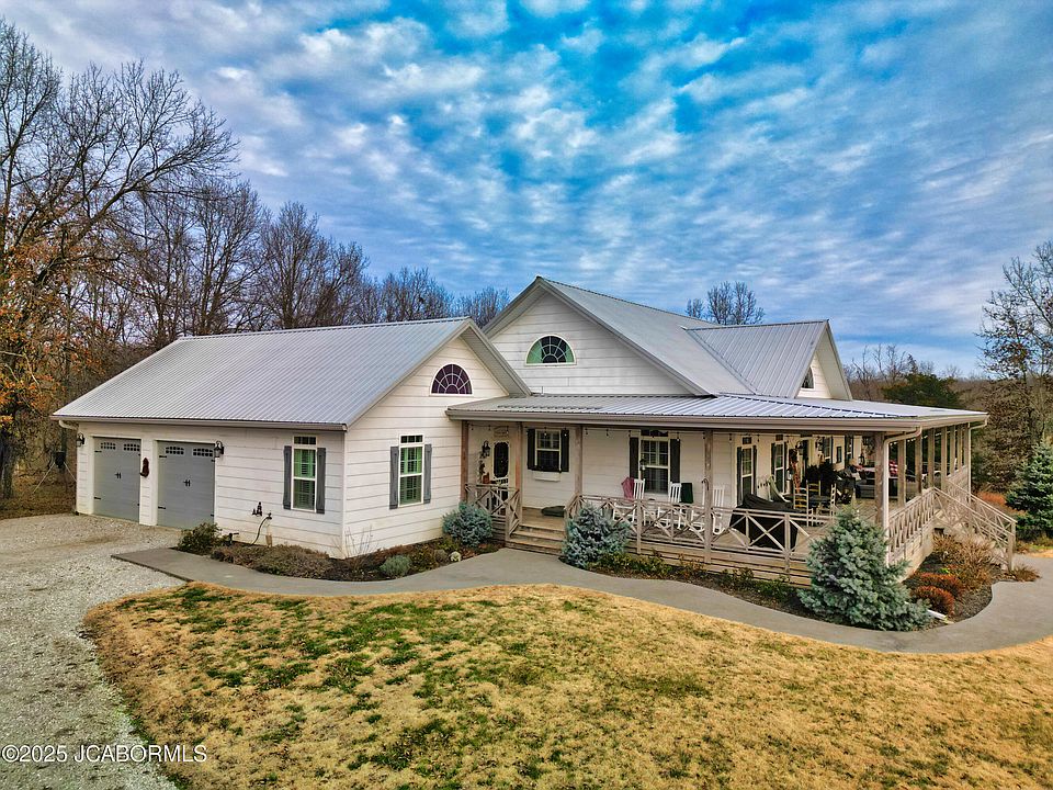Embrace the perfect blend of modern elegance and rustic charm in this custom-built 2016 farmhouse, located UNDER 15 minutes from Stadium exitt This 1.5-story home offers 4 spacious bedrooms, 4.5 baths, and an unfinished walkout basement, all situated on over 20 acres featuring ponds, a stream, and breathtaking sunsets.