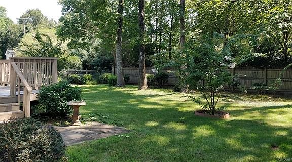 Cute house! Lush established landscaping with mature trees and pretty beds. Private back yard is fenced on 3 sides so you can easily finish out with the wings at the house. Popular split bedroom plan with two guest rooms sharing a hall bath on one side of the house and the owner suite with tray ceiling, ceiling fan, lg walk-in closet, and private en suite bath on the other side of the house. Refrigerator, washer, and dryer are negotiable. Bar area in kitchen for the casual meals. Kitchen and breakfast are open to the great room with gas log fireplace. Great location convenient to I-485, shopping and restaurants.
